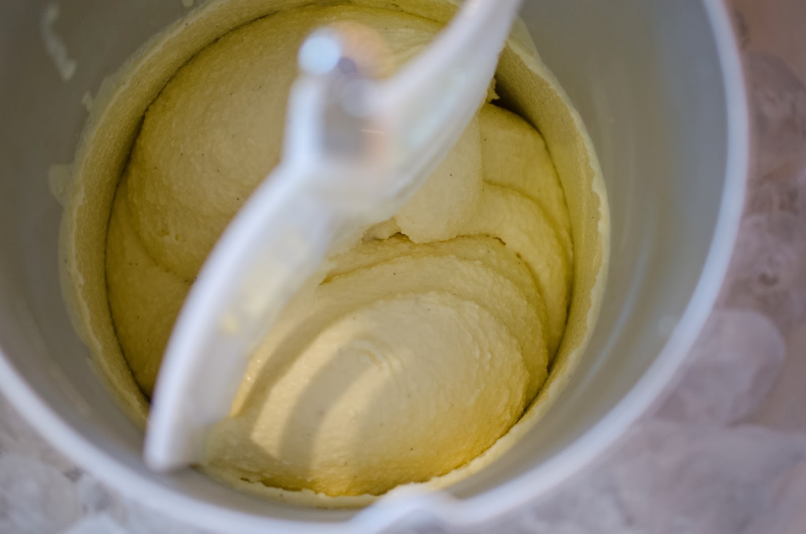 Pour refrigerated gelato base into ice cream maker and use ice cream maker as directed